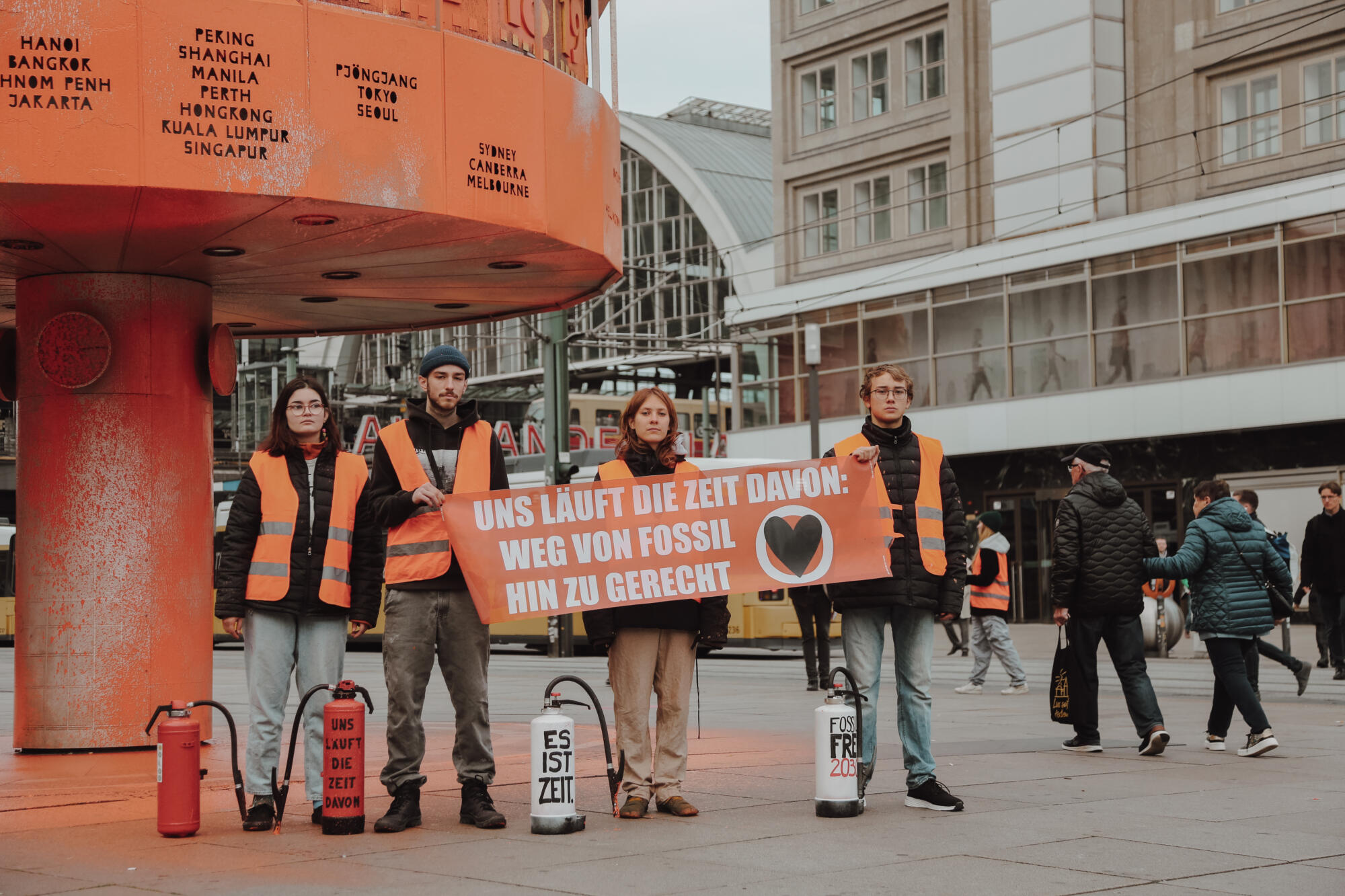 Hendrik beim Protest an der Weltzeituhr in Berlin.